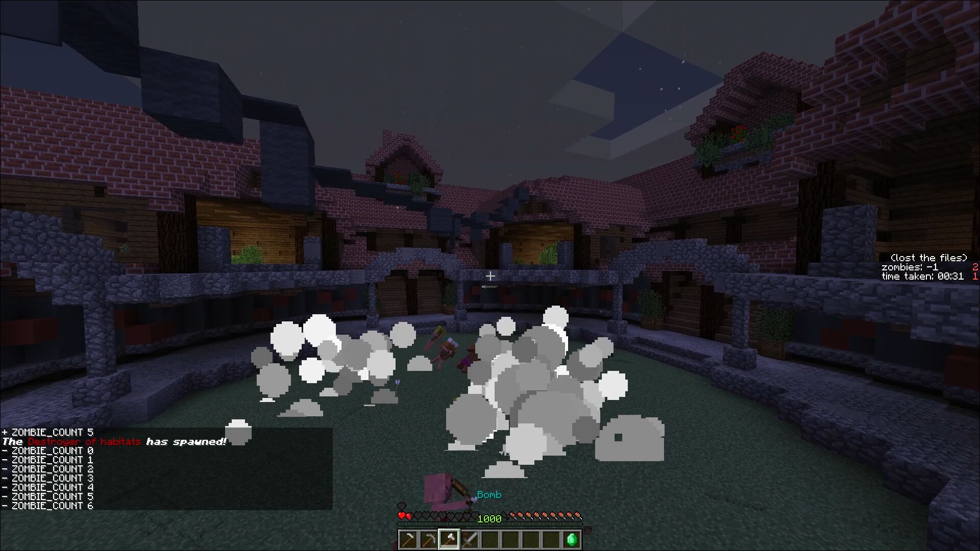 This was my largest project for at least a few years of my life. It is a custom server-side minigame for Minecraft written with Java and Spigot. There are various enemies that come in configurable waves, a ton of configurable custom weapons, support for many levels, another custom map loader, configurable scoreboard, lobbies, area effects and a bunch more other systems and easter eggs... Although, I have lost the configuration files for the version of source code I have, while I tried to replicate the configs for this demo... It barely works...