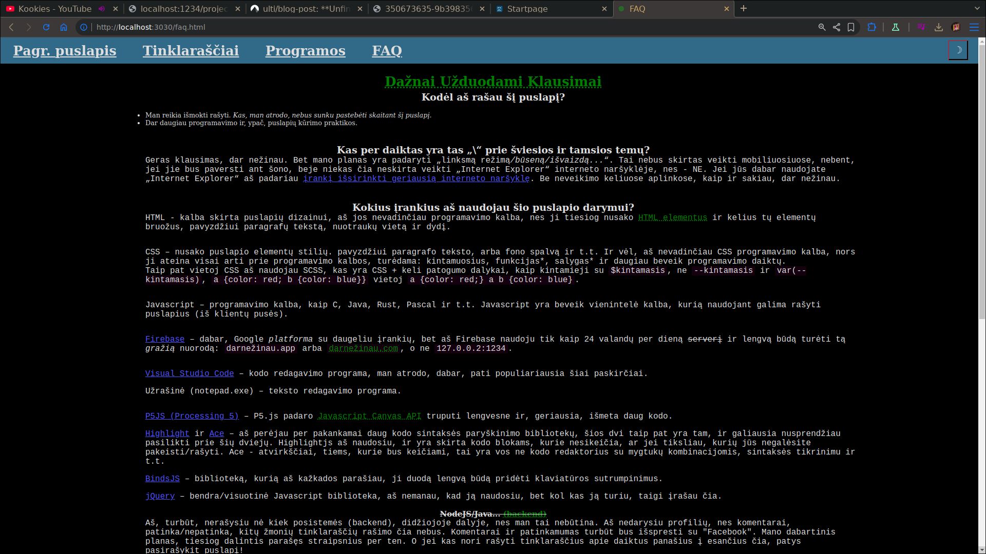 My ancient blog page website, that, I think, I never finished, however it is made quite similarly to this website, except I have a node.js server