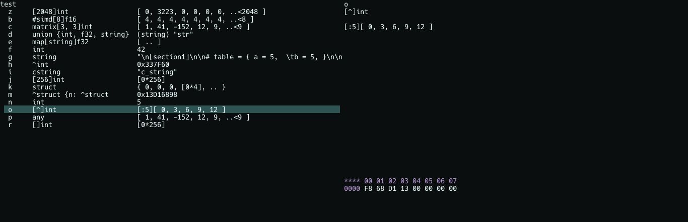 A memory explorer library for the Odin programming language that formats and displays all data structures linked to