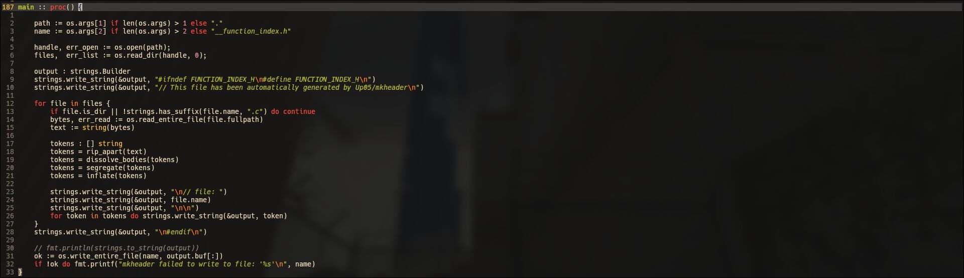 A .h file generator for the C programming language. It "parses" C files, gets all function declarations.