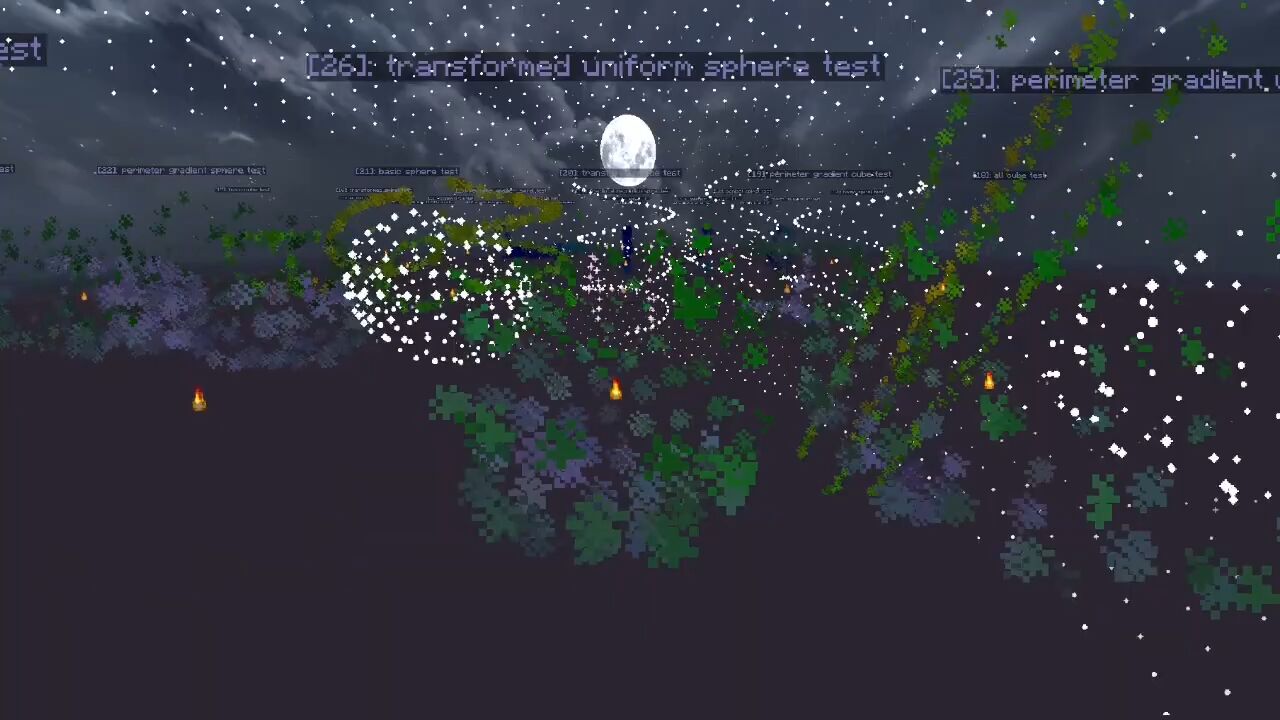 A while back me and a couple friends of mine were creating various plugins for an MMORPG Minecraft server And there with Kotlin and Spigot/PaperMC (if I'm not mistaken) I wrote a plugin that can display 3D shapes like, cubes, lines, spirals, uniform/non-uniform spheres with various particles, gradients and using various easings