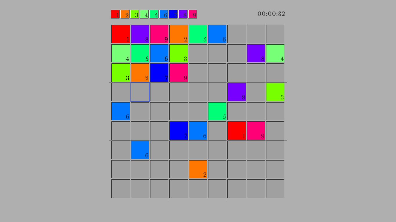 A sudoku (maybe, I'm still unsure whether I know how to play the game or not) clone I made not long ago over a morning and 2 lectures (economics lectures!!!)... I'm not sure whether the colors really help, but I suck at sudoku so much, I don't mind it...