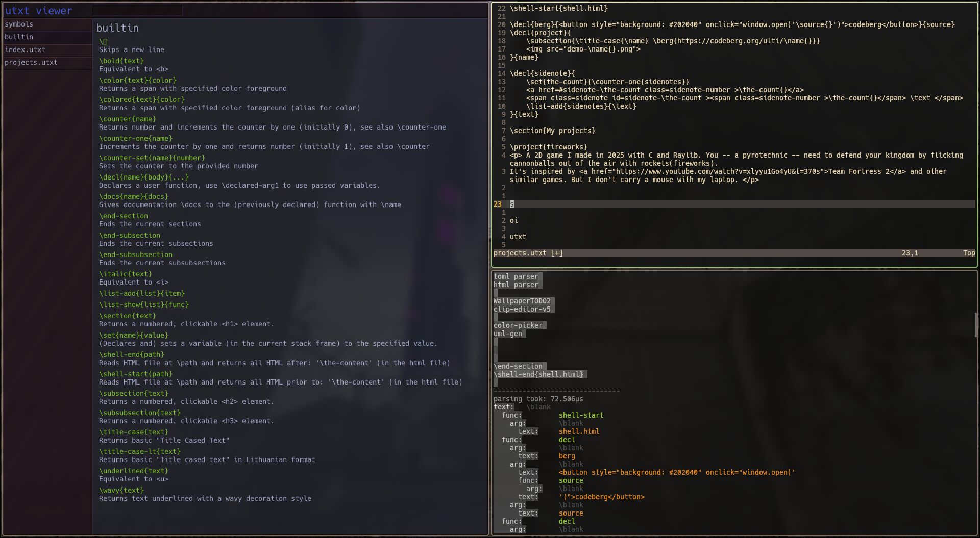 Apart from that, I can do whatever the hell I want, my build system is a go server and ls *.utxt | entr utxt, etc.